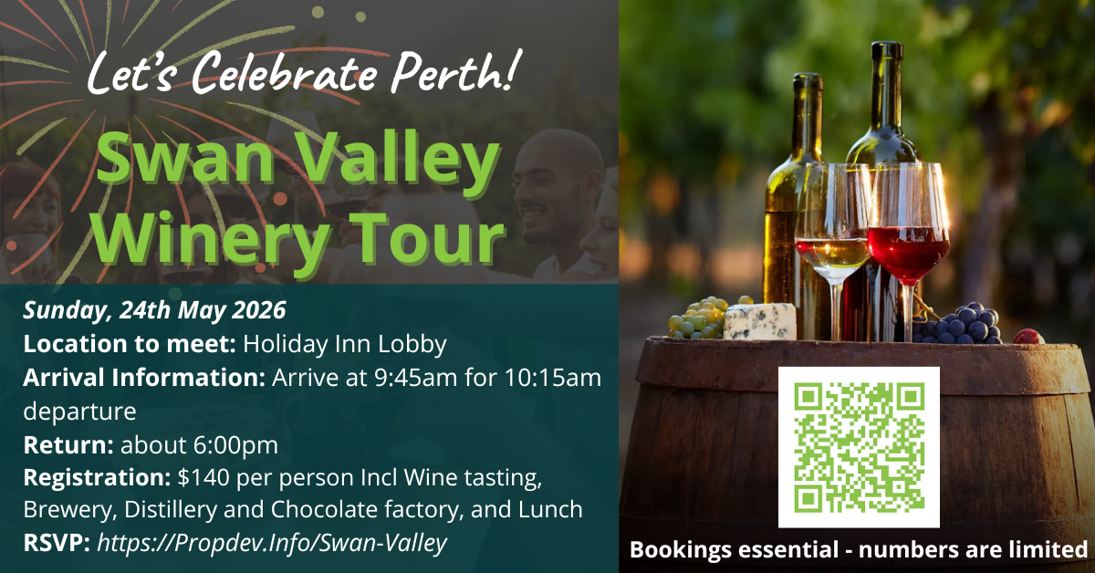 On Sunday following our first Meetup, we'll be heading out on a Swan Valley Winery Tour... Woohoo!